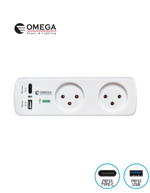 כניסת USB TYPE A, כניסת USB TYPE C שני שקעים נורת חיווי.